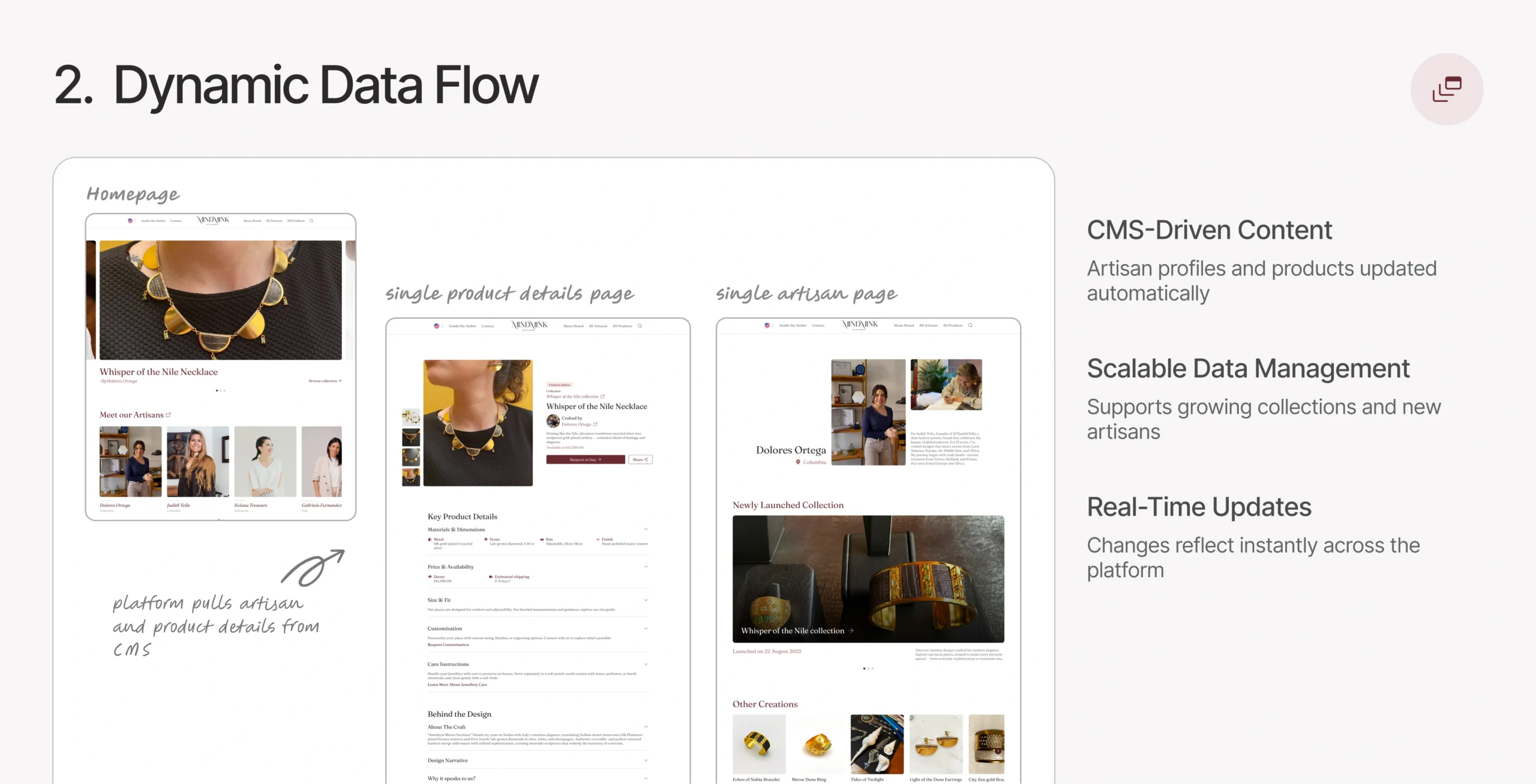 Shuffling and handling large amounts of artisan and product data was difficult in Framer.